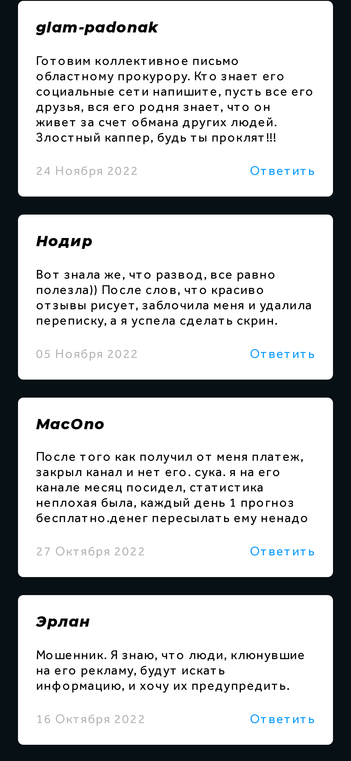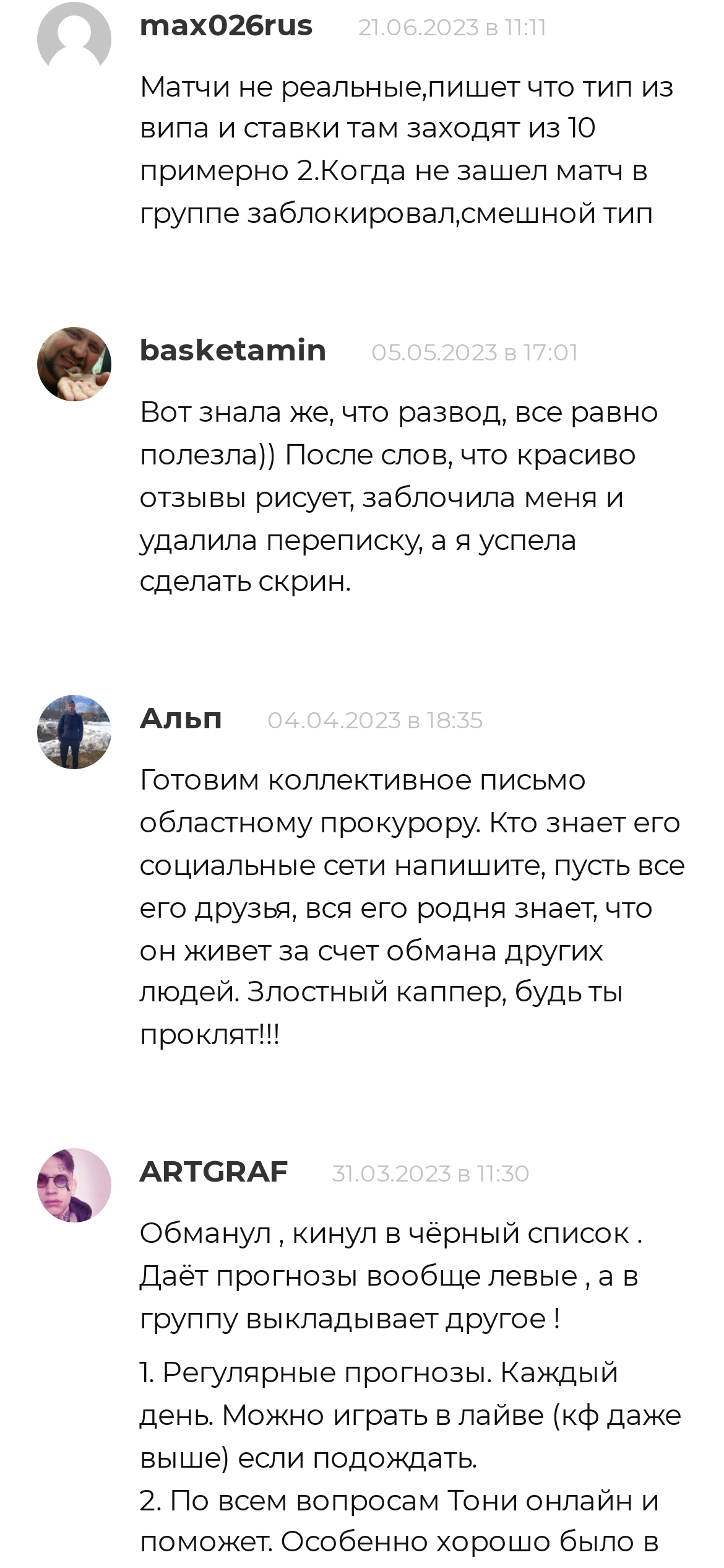 Хотите реально зарабатывать на ставках? Тогда посмотрите наш ТОП проверенных прогнозистов, отзывы о которых подтвреждают их безопасность в сотрудничестве.