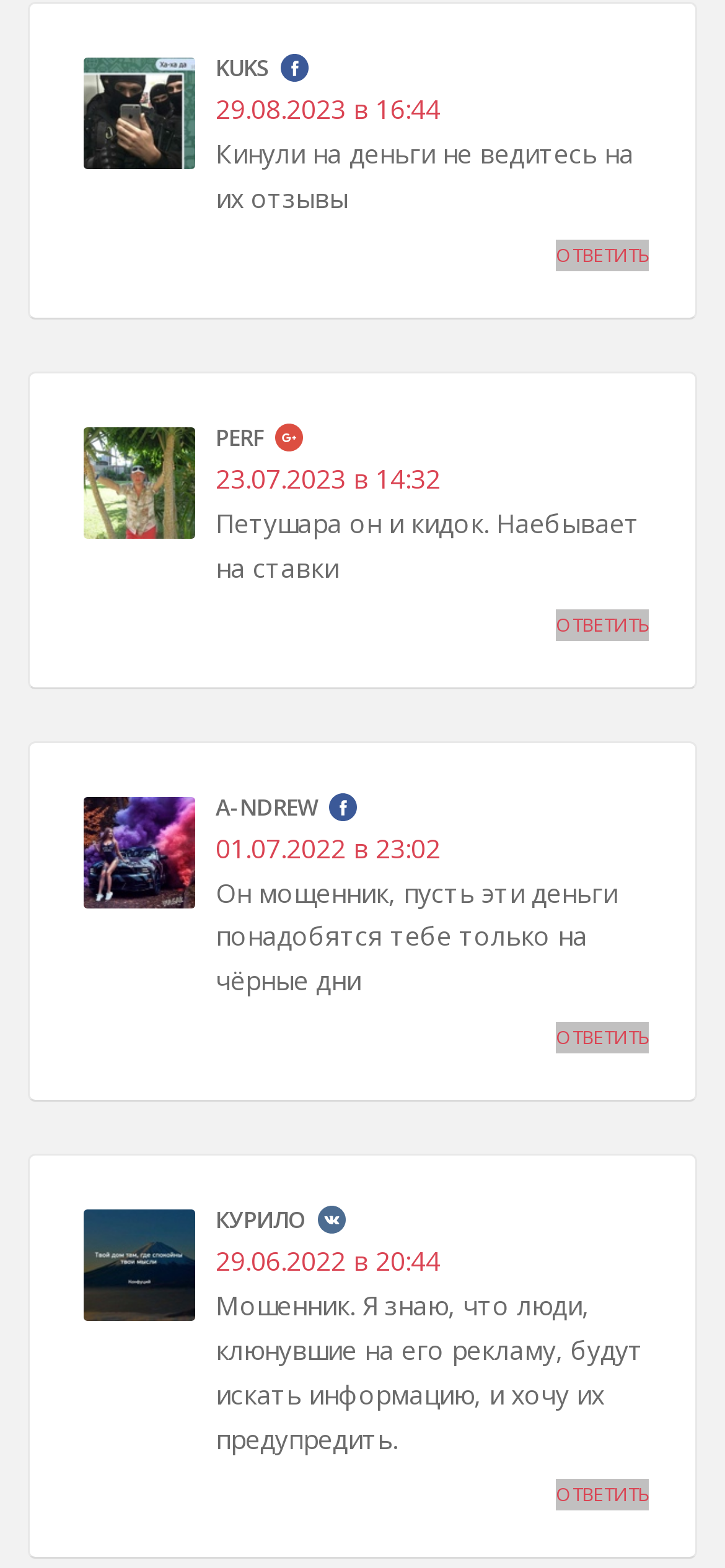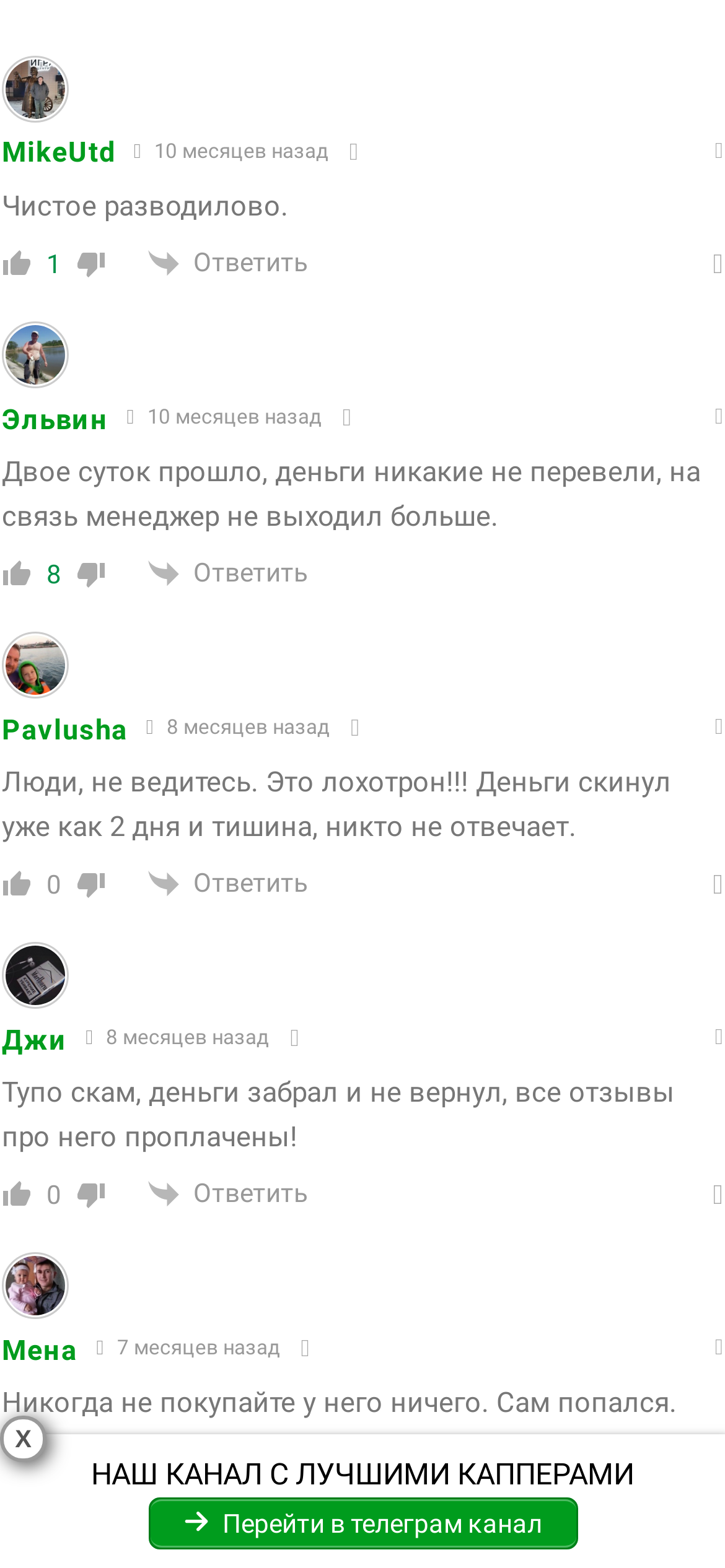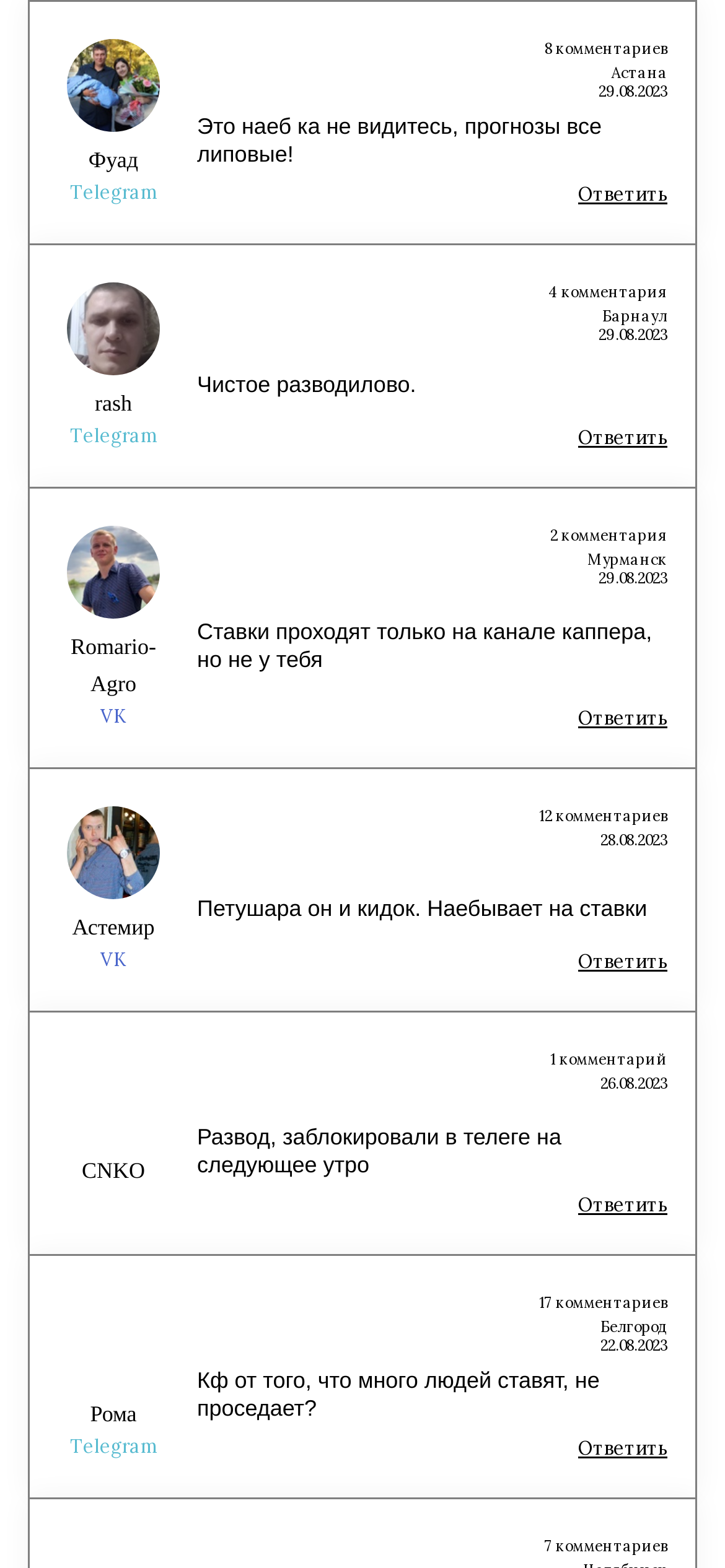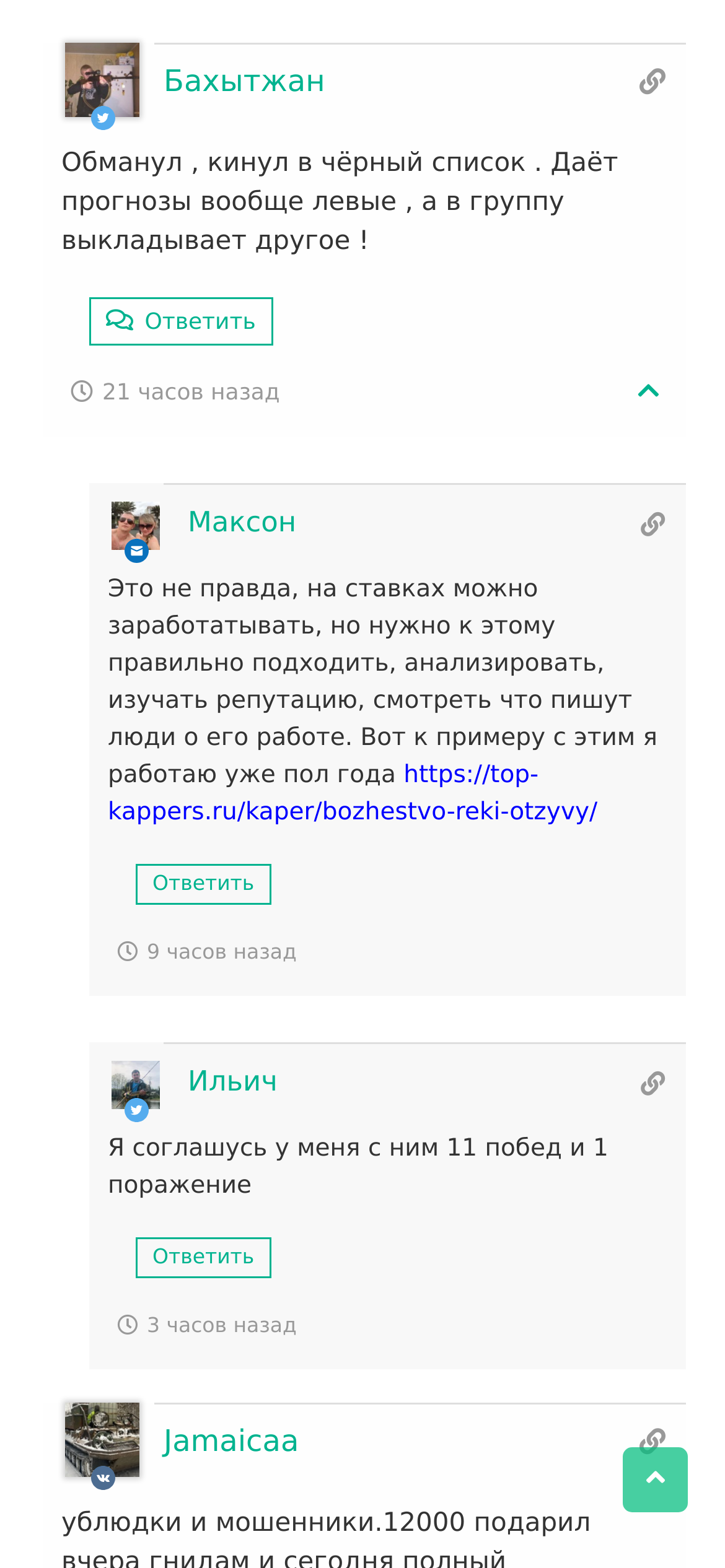 На независимых форумах беттинговой тематики в сети мы нашли множество негативных отзывов жертв этого афериста. Пользователи рассказывают, что реальная проходимость прогнозов даже из ВИП-чата находится на крайне низком уровне, не говоря уже про экспрессы, которые не заходят от слова совсем. Все это очень контрастирует с положительными отзывами на самом канале, которые мошенник выкладывает каждый день.