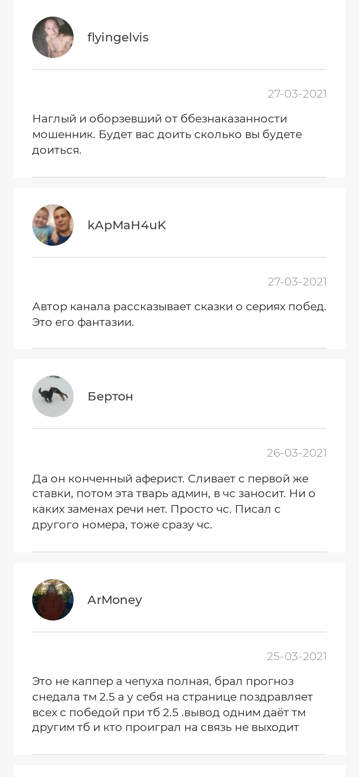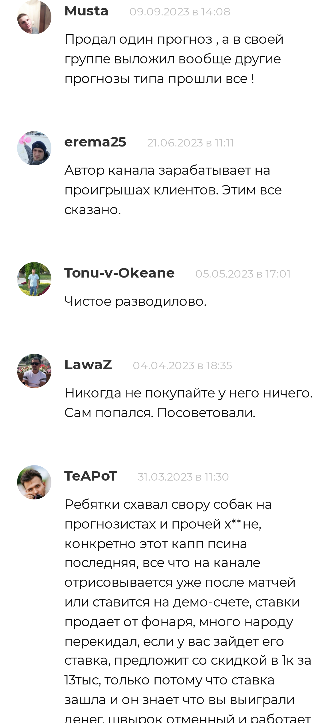 Одни пользователи говорят о том, что прогнозы далеко не настолько надежные, как заявляет Andrey Kazancev, другие прямо называют его мошенником.