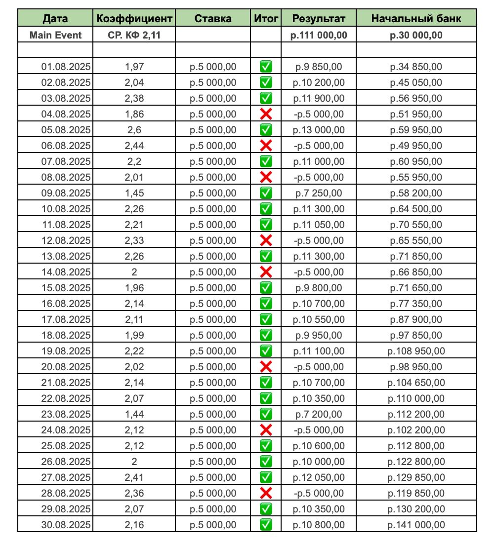 Формат Family Room и Main Event достаточно новый, появился в начале 2025 года. Наши читатели попросили разобраться что может получится работая по прогнозам Main Event. Взяли пакетом сразу 30 матчей, вот наш результат: