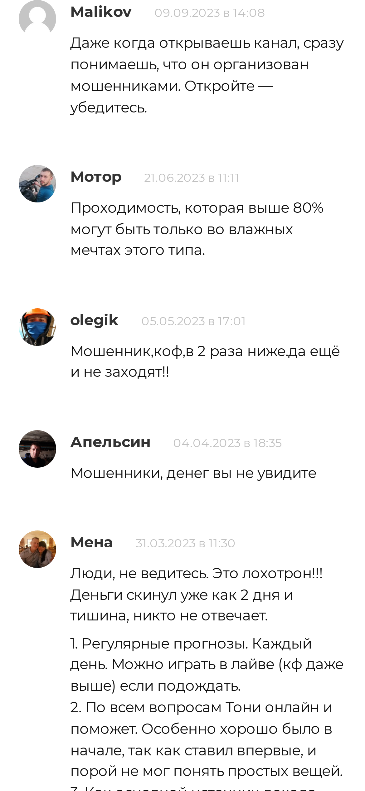 В комментариях вы можете оставить свою жалобу или положительное мнение о проекте. Каждое мнение важно, потому что оно поможет не совершить ошибку или выбрать надежного аналитика для себя. Также не забывайте ставить оценки, это можно сделать в два клика в нашем рейтинге.