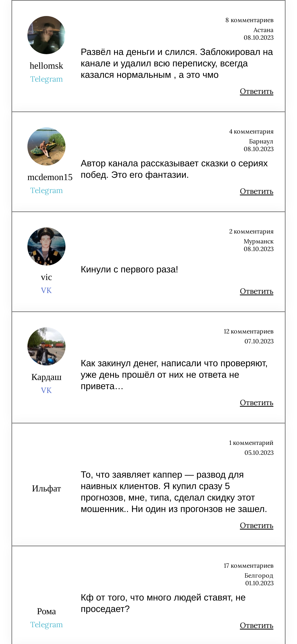 Жалоб и отзывов о работе данного проекта в сети почти нет. Это можно объяснить спецификой проекта и полностью бесплатным контентом. Фидбек на форумах, посвященных ставкам на спорт либо вовсе отсутствует, либо выглядит как не вызывающая доверие мотивированная фикция в целях привлечения внимания к другим проектам.