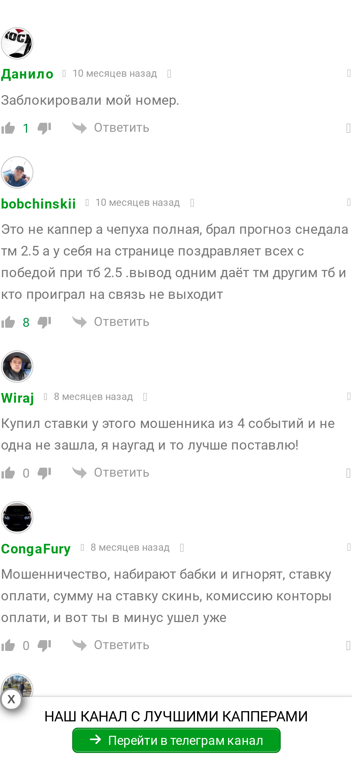 Помимо рейтинга каперов и самих прогнозов пользователю доступен достаточно разнообразный контент: